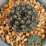 Meet Gymnocalycium quehlianum, a charming, globe-shaped cactus beloved for its beautifully banded ribs and generous, soft-toned flowers. The body features smooth, rounded ribs with subtle striping in shades of green and blue-gray, giving it a polished, almost sculpted look.