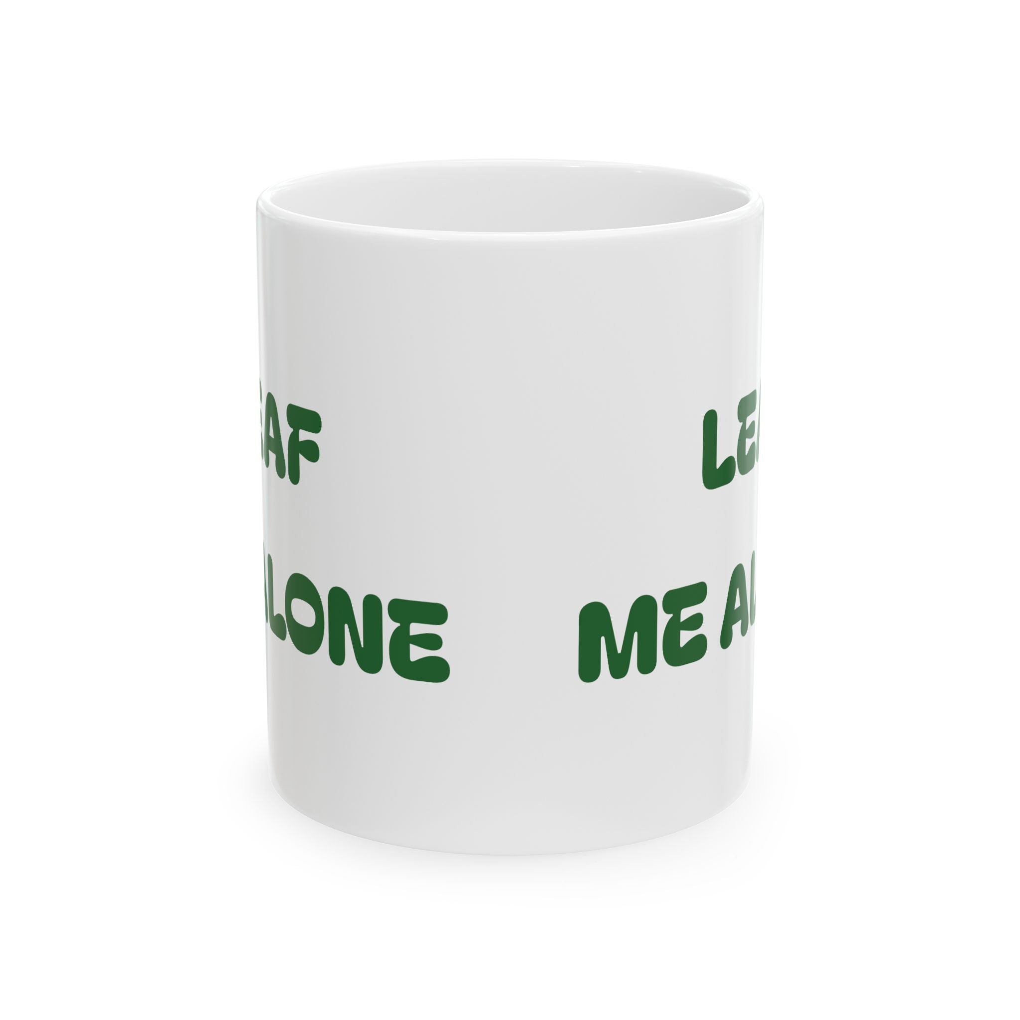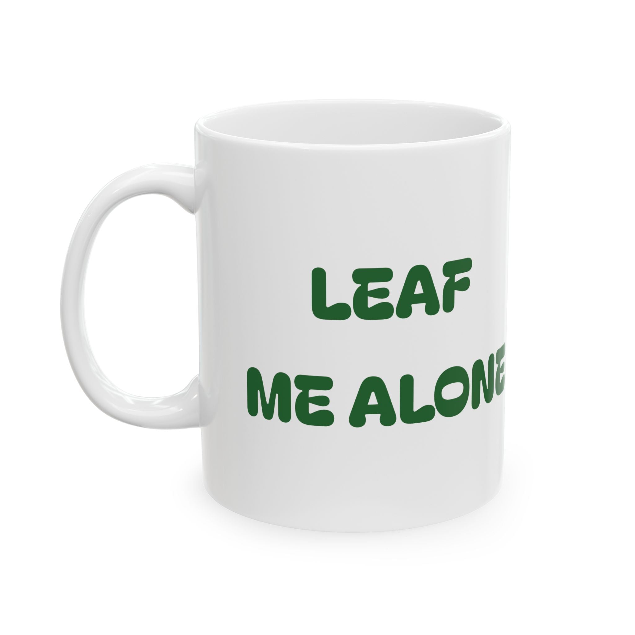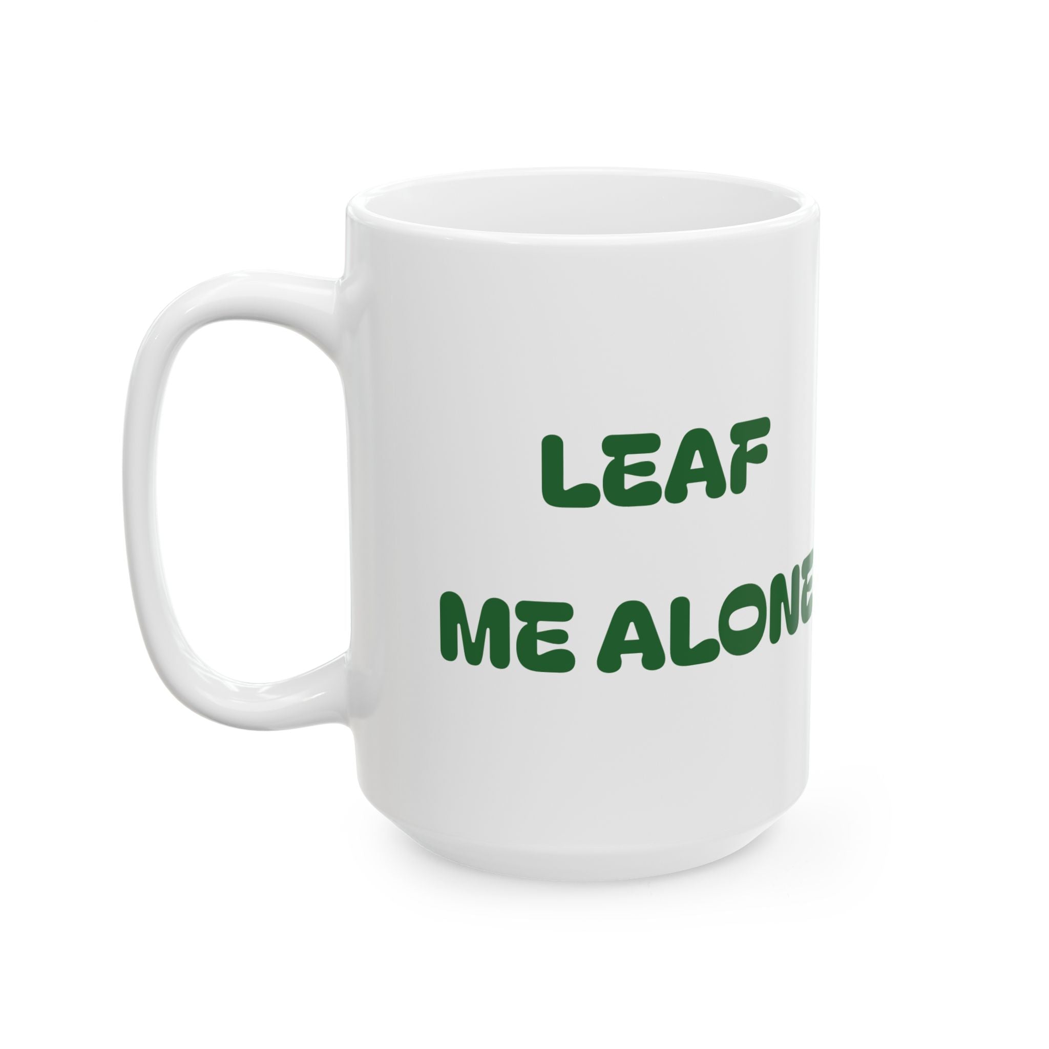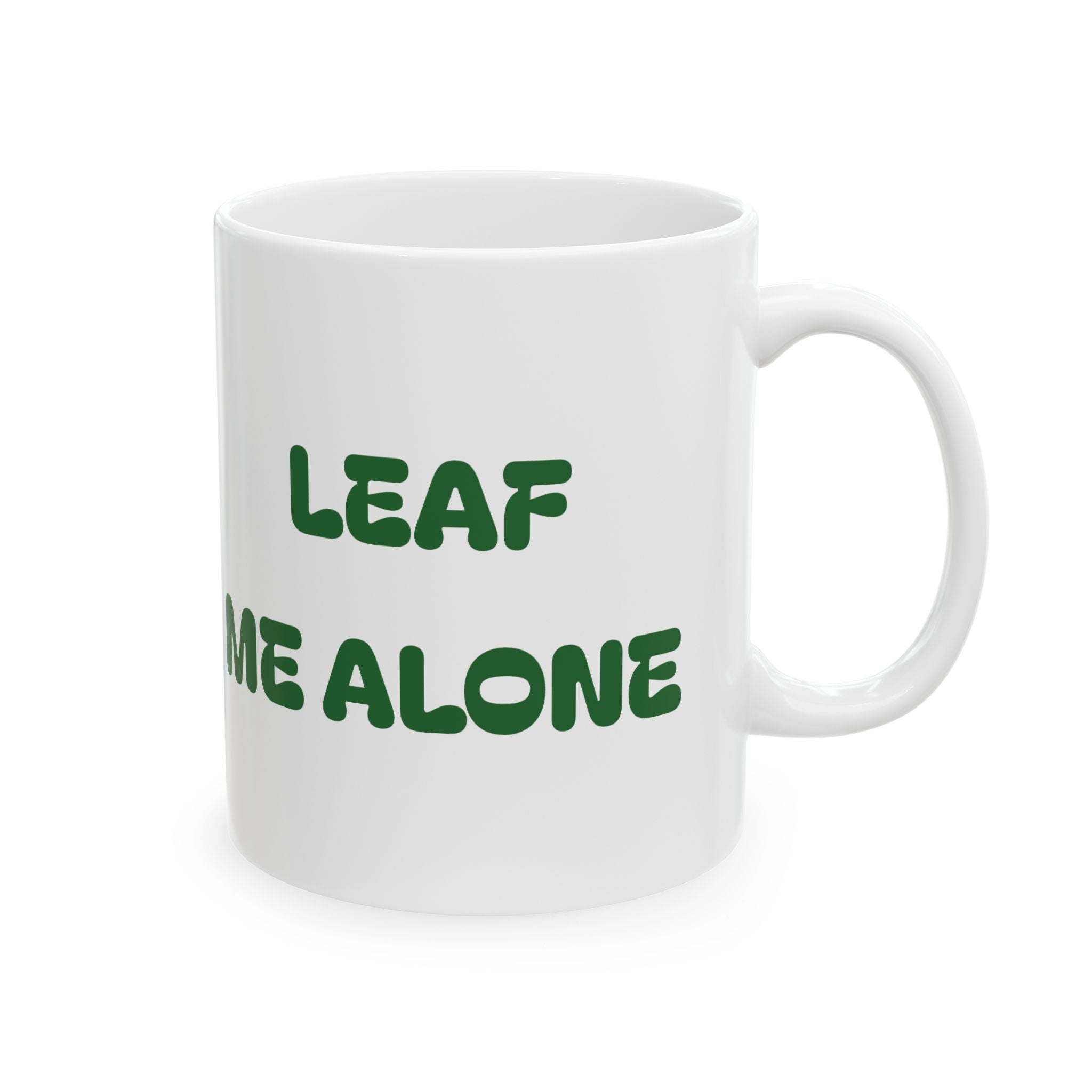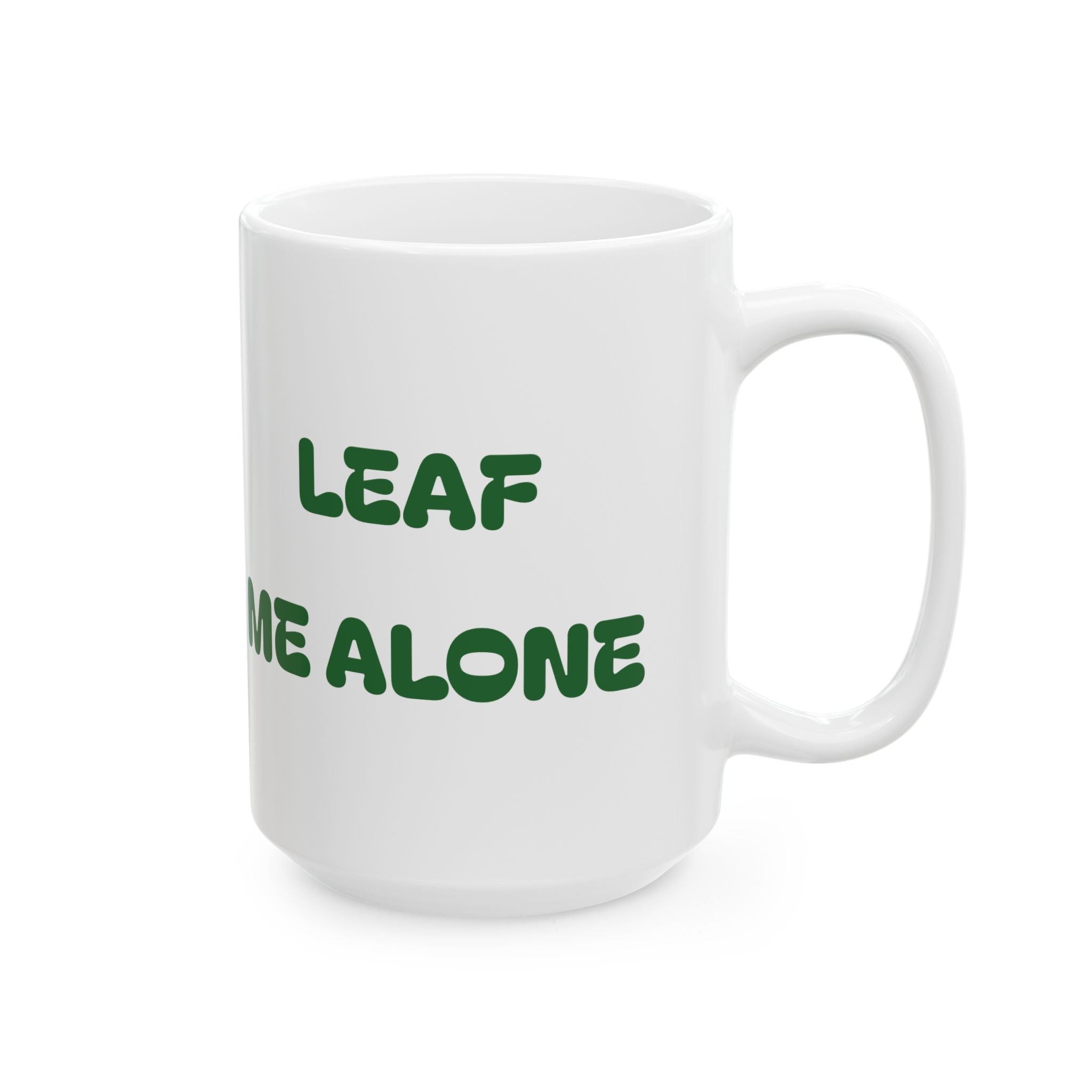 Leaf Me Alone Ceramic Mug — Funny Plant Pun Coffee Cup (11oz, 15oz)