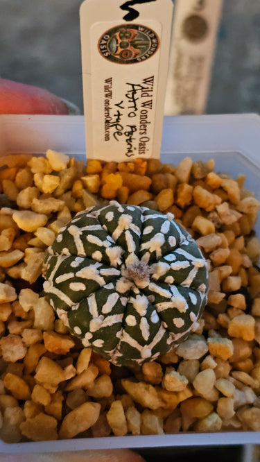 Calling all cosmic plant lovers! The Astrophytum var. V-Type isnโ€™t just a cactusโ€”itโ€™s a mathematical masterpiece from another galaxy. With its distinct "V" patterned ribs, speckled skin, and minimalist form, this plant looks like it crash-landed from Planet Perfection.